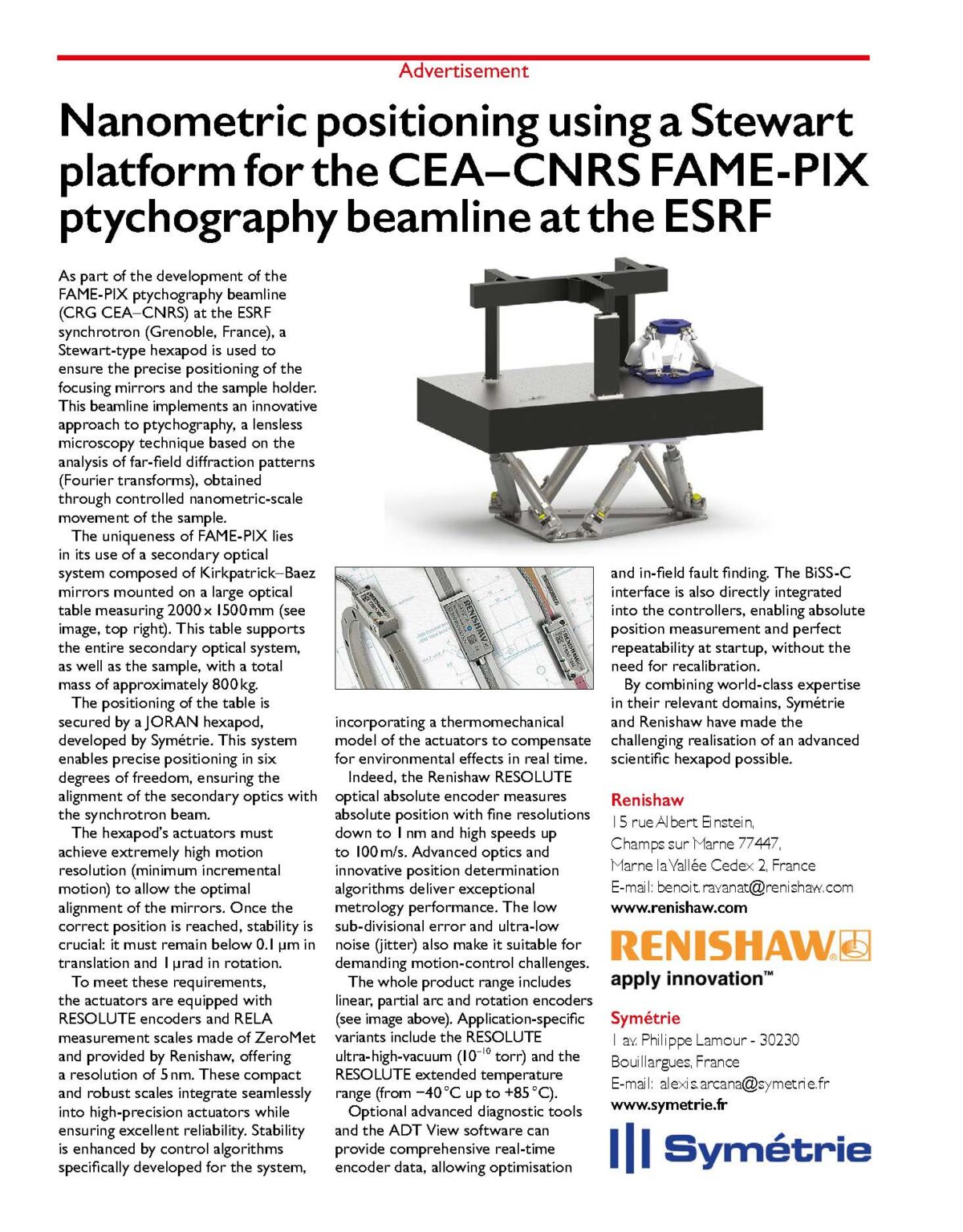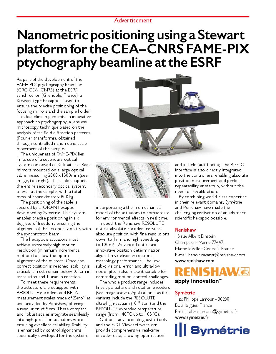 - Positionnement nanométrique à l’aide d’un hexapode Symétrie pour la ligne de faisceau de ptychographie CEA-CNRS FAME-PIX à l’ESRF 2025